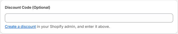 &#x20;If you'd like to offer a discount, create one in your Shopify admin and enter the code here. The discount will be automatically applied when the customer clicks the link.